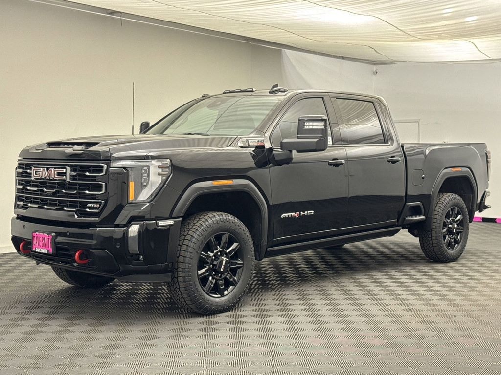 Preferred Equipment Group 4SB: LED Cargo Area Lighting; Trailer Side Blind Zone Alert; SiriusXM with 360L; Remote Vehicle Starter System; Safety Alert Seat; Ultrasonic Front and Rear Park Assist; Trailer Cam Provisions and Trailer Viewing Software; Electric Rear-Window Defogger; Floor-Mounted Center Console; Gloss Black Header Grille and Grille Insert Bars; Unauthorized Entry Theft-Deterrent System; Bed View Camera with Two Trailer Camera Provisions; Front Rain-Sensing Wipers; Sierra HD Pro Safety; Wireless Phone Projection; 2 USB Ports; Rear Cross Traffic Alert; 120-Volt Instrument Panel Power Outlet; 2 Charge/data USB Ports Inside Center Console; Heated Driver and Front Outboard Passenger Seats; Wireless Charging; X31 Off-Road Package; Front Premium Floor Liners with Removable Carpet Insert; Steering Wheel Audio Controls; Rear Premium Floor Liners with Removable Carpet Insert; 2 Charge-Only Rear USB Ports; GMC Connected Access Capable; OnStar and GMC Connected Services Capable; 120-Volt Bed Mounted Power Outlet; Heated 2nd Row Outboard Seats; Power Front Passenger Windows with Express Up/down; Bose Premium 7-Speaker Sound System; 2-Speed Active Transfer Case; Deep-Tinted Glass; Spray-On Bedliner with AT4 Logo; Integrated Trailer Brake Controller; HD Surround Vision; Ventilated Driver and Front Passenger Seats; Manual Tilt-Wheel/telescoping Steering Column; Keyless Open and Start; ProGrade Trailering System; Push Button Start; Rear Wheelhouse Liners. AT4 Preferred Package: Power Sliding Rear Window with Defogger; LED Smoked Amber Roof Marker Lamps; Universal Home Remote; Adaptive Cruise Control. AT4 Premium Plus Package: Power Sunroof; Technology Package. Power-Retractable Black Assist Steps. Technology Package. Power Sunroof. Onyx Black. LED Smoked Amber Roof Marker Lamps. **Equipment listed is based on original vehicle build and subject to change. Please confirm the accuracy of the included equipment by calling the dealer prior to purchase.**