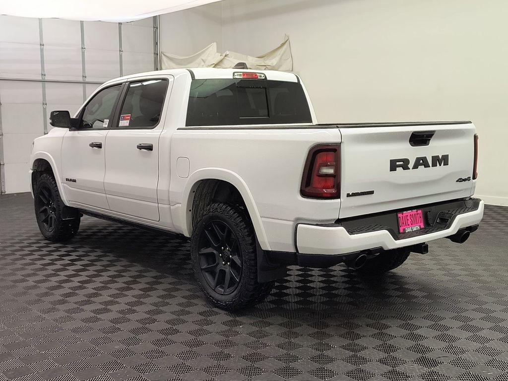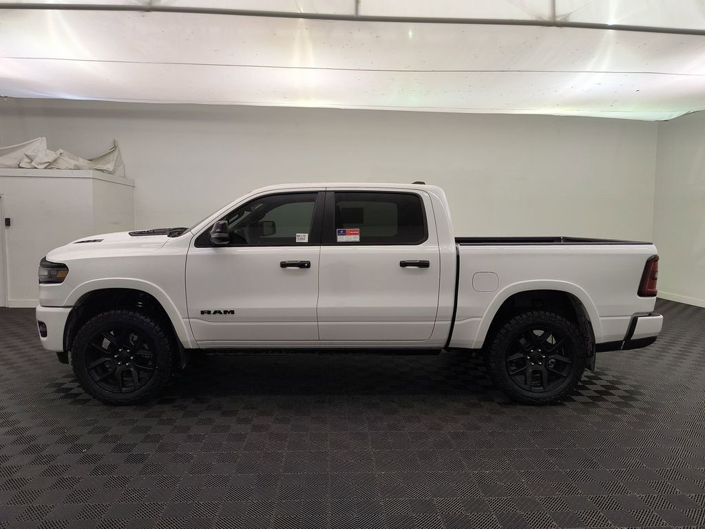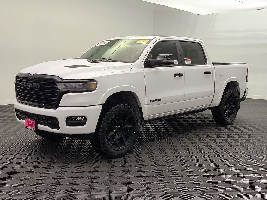 Laramie Level 2 Equipment Group: Google Android Auto; USB Host Flip; HD Radio; Rain Sensitive Windshield Wipers; Smartphone as a Key Capable; 14.4 Touchscreen Display; Dual Wireless Charging Pad; Front Passenger Interactive Display; Integrated Voice Command with Bluetooth; Connectivity - US/Canada; Uconnect 5 Nav with 14.4 Display; GPS Navigation; 4G LTE Wi-Fi Hot Spot; GPS Antenna Input; Harman/kardon 19 Speaker Premium Sound; SiriusXM with 360L; Connected Travel and Traffic Services; Cluster 12 TFT Color Display; Power Tailgate; Apple CarPlay. Quick Order Package 21H Laramie. Night Edition: Black Headlamp Bezels; Auto Power-Folding Mirrors; 22 X 9 Forged Aluminum Wheels; Exterior Mirrors with Heating Element; Proximity Approach/departure Lamps; Auto Dim Exterior Driver Mirror; Anti-Spin Differential Rear Axle; Accent Color Door Handles; Black Interior Accents; Body Color Front Bumper; Grille Surround 3 Black Texture 2 Black; Body Color Rear Bumper with Step Pads; RAM Grille Badge - Black; Black Painted Exterior Mirrors Caps; Exterior Mirrors Approach Lamps; Leather Trimmed Bucket Seats; Accent Color Premium Power Mirrors; Exterior Mirrors with Supplemental Signals; Sport Performance Hood; Exterior Mirrors Courtesy Lamps; Black Exterior Truck Badging; Accent Color Tailgate Handle; Exterior Mirrors with Memory; Dual Exhaust with Black Tips; Convex Wide-Angle Exterior Mirror Insert; Black Tail Lamp Bezels. 22 X 9 Forged Aluminum Wheels. Dual-Pane Panoramic Sunroof. Leather Trimmed Bucket Seats. Anti-Spin Differential Rear Axle. 33 Gallon Fuel Tank. Trailer Brake Control. **Equipment listed is based on original vehicle build and subject to change. Please confirm the accuracy of the included equipment by calling the dealer prior to purchase.**