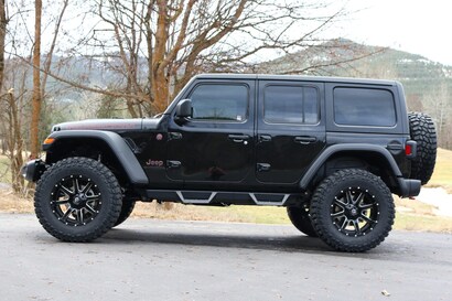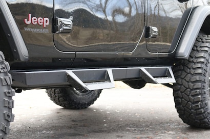 This Jeep is equipped with ICI Magnum Steps, rear tire locator, a 2" lift and tint.