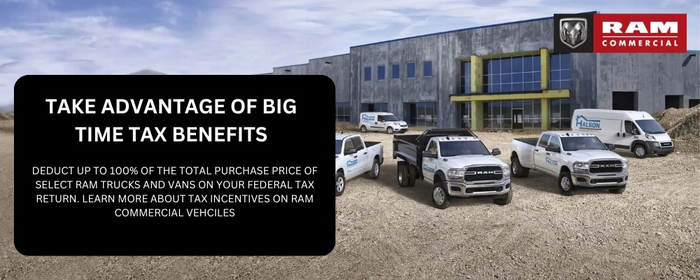 A Ram truck is generally considered Section 179 property for U.S. federal income tax purposes. This means a taxpayer may elect to treat the cost of any Section 179 property as an expense and allowed as a deduction for the taxable year in which the property is acquired and placed in service. A qualifying business may expense up to $1,160,000 of Section 179 during 2023.Consult your tax professional to determine your vehicle depreciation and tax benefits.