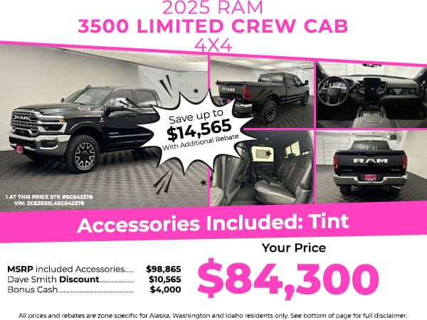 Prices shown are good for Idaho, Washington and Alaska residents only. Not actual photo, file photo. Call dealer for rebates and pricing for different states. Not all customers will qualify for all rebates. All vehicles are subject to prior sale. Rebates as of 3/03/2026 and ad expires 3/31/2026 barring manufacturer rebate changes. Manufacturer retains the right to change incentives without notice, other restrictions apply. Chevrolet and GMC are registered trademarks of General Motors Corporation. Vehicle Identification numbers posted in dealership and are available upon request. Not responsible for typographical errors. Prices/payments are plus tax, license & negotiable $549.00 Dealer Documentation fee. File photos, not actual photos. Limit 1 per customer or up to dealer discretion. No sales to dealers, brokers or anyone who buys for the sole purpose of resale or export sales. Trade in allowance requires customer to trade in their qualifying vehicle to be eligible for this incentive. The definition of hassle free buying is the customer choice to buy without the hassle of negotiating. Contact dealer for details.