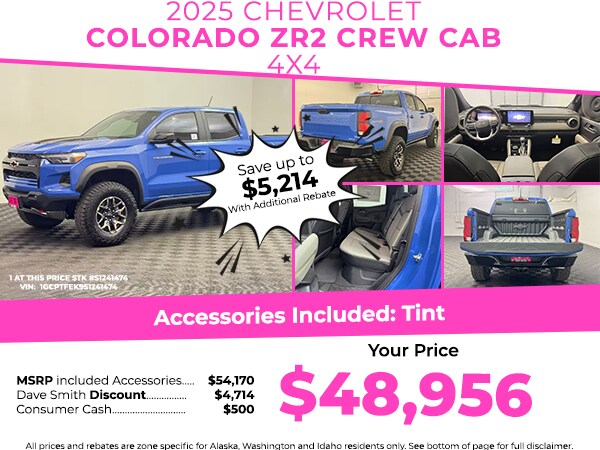 Technology Package: HD Surround Vision; Rear Pedestrian Alert; Bose Premium 7-Speaker Audio System Feature; Adaptive Cruise Control. Preferred Equipment Group 4ZR: ZR2 Off-Road Package; Chevy Safety Assist. Power Sliding Glass with Manual Shade Sunroof. Front License Plate Kit. **Equipment listed is based on original vehicle build and subject to change. Please confirm the accuracy of the included equipment by calling the dealer prior to purchase.**
