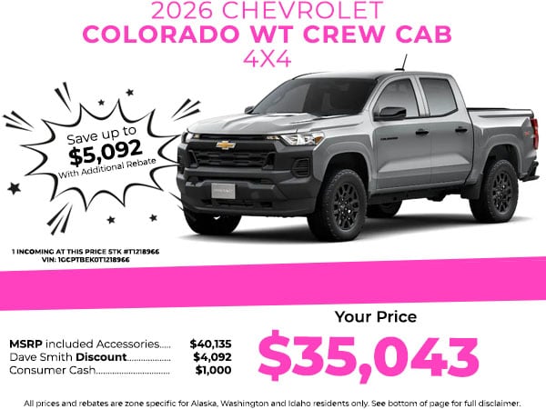 Bluetooth technology is built into the Chevrolet Colorado, keeping your hands on the steering wheel and your focus on the road. Apple CarPlay: Seamless smartphone integration for it - stay connected and entertained on the go! Protect it from unwanted accidents with a cutting edge backup camera system. The vehicle stays safely in its lane with Lane Keep Assist. The installed navigation system will keep you on the right path. The rear parking assist technology on this 2026 Chevrolet Colorado will put you at ease when reversing. The system alerts you as you get closer to an obstruction. The vehicle offers Android Auto for seamless smartphone integration. This model's Lane Departure Warning keeps you safe by alerting you when you drift from your lane. When you encounter slick or muddy roads, you can engage the four wheel drive on this unit and drive with confidence. Keep safely connected while in this vehicle with OnStar. You may enjoy services like Automatic Crash Response, Navigation, Roadside Assistance and Hands-Free Calling.