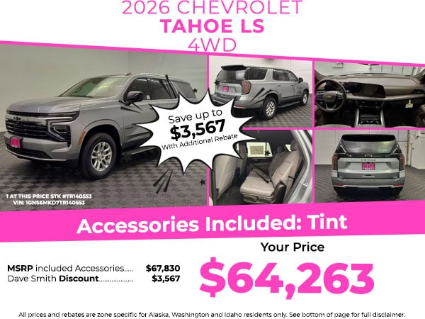 Bluetooth technology is built into the vehicle, keeping your hands on the steering wheel and your focus on the road. This unit has automated speed control that adjusts to maintain a safe following distance, enhancing highway driving convenience. Apple CarPlay: Seamless smartphone integration for this Chevrolet Tahoe - stay connected and entertained on the go! This 2026 Chevrolet Tahoe is equipped with the latest generation of XM/Sirius Radio. This unit stays safely in its lane with Lane Keep Assist. You'll never again be lost in a crowded city or a country region with the navigation system on the vehicle. This model comes equipped with Android Auto for seamless smartphone integration on the road. The Chevrolet Tahoe's Lane Departure Warning keeps you safe by alerting you when you drift from your lane. Protect this 1/2 ton suv from unwanted accidents with a cutting edge backup camera system. Start this Chevrolet Tahoe from inside with remote start.