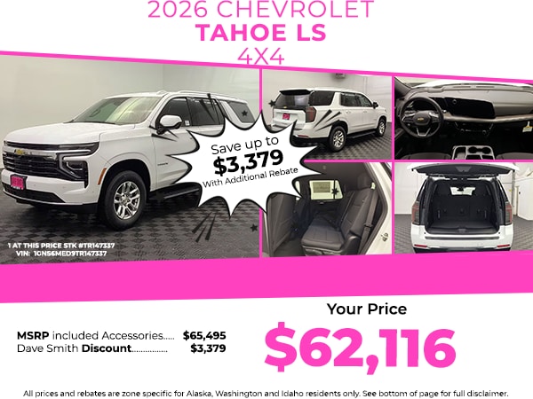 Lane Keep Assist in this Chevrolet Tahoe helps maintain safe driving by gently steering to stay within the lane. This unit has automated speed control that adjusts to maintain a safe following distance, enhancing highway driving convenience. It offers Apple CarPlay for seamless connectivity. You'll never again be lost in a crowded city or a country region with the navigation system on it. See what's behind you with the back up camera on this 2026 Chevrolet Tahoe . Bluetooth technology is built into the vehicle, keeping your hands on the steering wheel and your focus on the road. This Chevrolet Tahoe offers Android Auto for seamless smartphone integration. This Chevrolet Tahoe's Lane Departure Warning helps keep you in your lane. Never get into a cold vehicle again with the remote start feature on this unit. This 1/2 ton suv has four wheel drive capabilities. Maintaining a stable interior temperature in this 2026 Chevrolet Tahoe is easy with the climate control system.