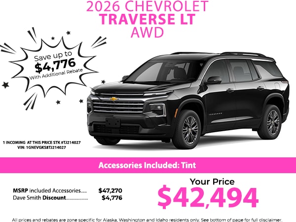 This 1/2 ton suv is pure luxury with a heated steering wheel. This vehicle offers Apple CarPlay for seamless connectivity. This 1/2 ton suv features a hands-free Bluetooth phone system. Lane Keep Assist in this 1/2 ton suv helps maintain safe driving by gently steering to stay within the lane. Never get into a cold vehicle again with the remote start feature on it. The vehicle has automated speed control that adjusts to maintain a safe following distance, enhancing highway driving convenience. See what's behind you with the back up camera on this Chevrolet Traverse. The installed navigation system will keep you on the right path. The Chevrolet Traverse comes equipped with Android Auto for seamless smartphone integration on the road. This 1/2 ton suv is painted with a sleek and sophisticated black color. This vehicle is outfitted with an OnStar communication system. With the keyless entry system on the Chevrolet Traverse you can pop the trunk without dropping your bags from the store.