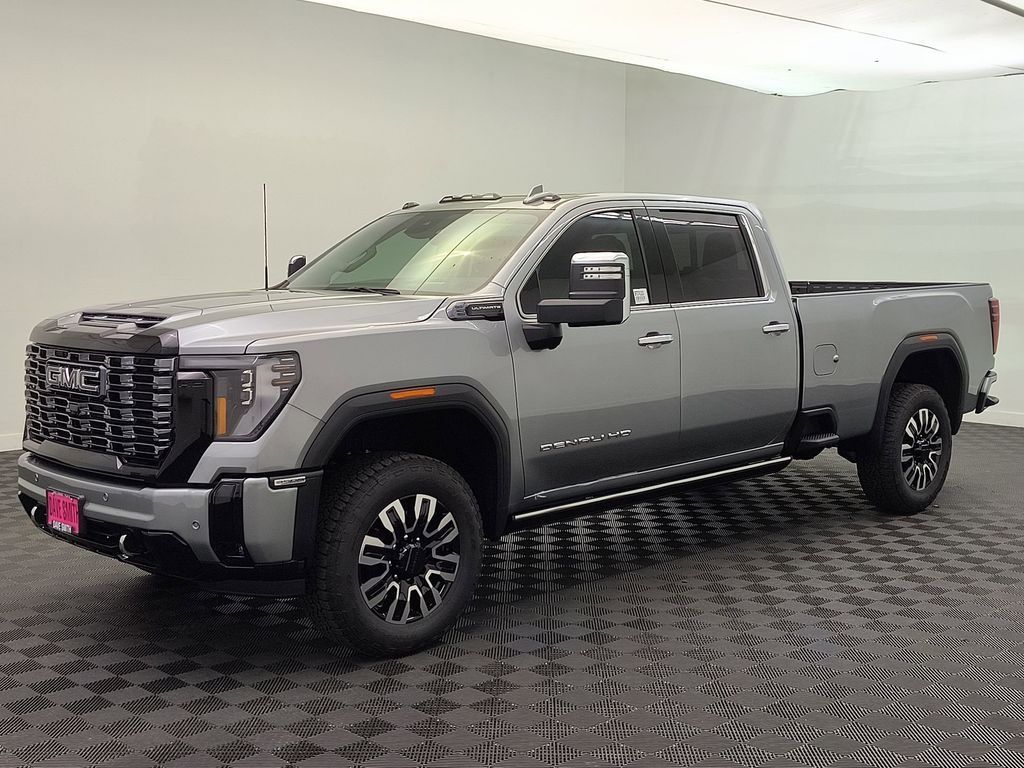 Technology Package: Multicolor 15" Diagonal Head-Up Display; Auto-Dimming Inside Rearview Mirror with Camera. Preferred Equipment Group 5SB: LED Cargo Area Lighting; Trailer Side Blind Zone Alert; SiriusXM with 360L Trial Subscription; Remote Vehicle Starter System; Power Sliding Rear Window with Defogger; Safety Alert Seat; Ultrasonic Front and Rear Park Assist; Trailer Camera Provisions; Electric Rear-Window Defogger; Floor-Mounted Center Console; Unauthorized Entry Theft-Deterrent System; Bed View Camera with Two Trailer Camera Provisions; Front Rain-Sensing Wipers; Trailer Tire Pressure Monitor Sensors; Sierra HD Pro Safety; Wireless Phone Projection; 2 USB Ports; Rear Cross Traffic Alert; 120-Volt Instrument Panel Power Outlet; 2 Charge/data USB Ports Inside Center Console; LED Smoked Amber Roof Marker Lamps; Heated Driver and Front Outboard Passenger Seats; Wireless Charging; X31 Off-Road Package; Steering Wheel Audio Controls; 2 Charge-Only Rear USB Ports; Universal Home Remote; 120-Volt Bed Mounted Power Outlet; Heated 2nd Row Outboard Seats; Power Front Windows with Passenger Express Up/down; 2-Speed Active Transfer Case; Deep-Tinted Glass; Spray-On Pickup Bedliner with GMC Logo; HD Surround Vision; Ventilated Driver and Front Passenger Seats; Manual Tilt-Wheel/telescoping Steering Column; Power Sunroof; Keyless Open and Start; ProGrade Trailering System; Bose Premium Series 12-Speaker System; Signature Denali Ultimate Grille in Vader Chrome; Push Button Start; Rear Wheelhouse Liners. Gooseneck/5th Wheel Prep Package. Sterling Metallic. **Equipment listed is based on original vehicle build and subject to change. Please confirm the accuracy of the included equipment by calling the dealer prior to purchase.**