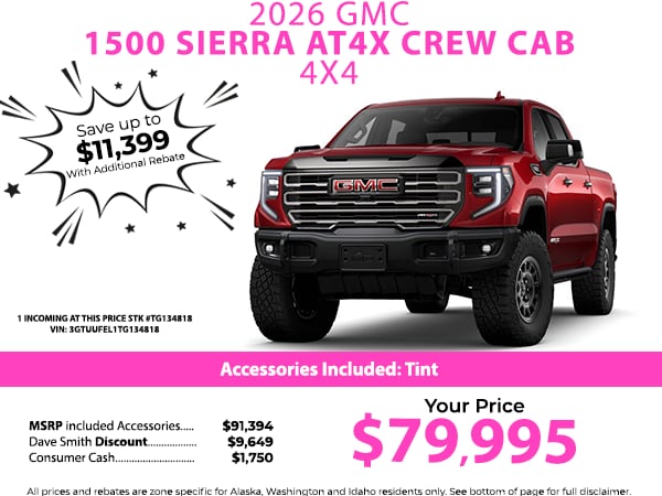It stays safely in its lane with Lane Keep Assist. Start the vehicle from inside with remote start. Protect the vehicle from unwanted accidents with a cutting edge backup camera system. Engulf yourself with the crystal clear sound of a BOSE sound system in this model. This 1/2 ton pickup features steering wheel audio controls. Apple CarPlay: Seamless smartphone integration for it - stay connected and entertained on the go! This unit has auto-adjust speed for safe following. The leather seats in this vehicle are a must for buyers looking for comfort, durability, and style. Bluetooth technology is built into this unit, keeping your hands on the steering wheel and your focus on the road. This GMC Sierra comes equipped with Android Auto for seamless smartphone integration on the road. This 2026 GMC Sierra 1500 is pure luxury with a heated steering wheel. An off-road package is equipped on this unit.