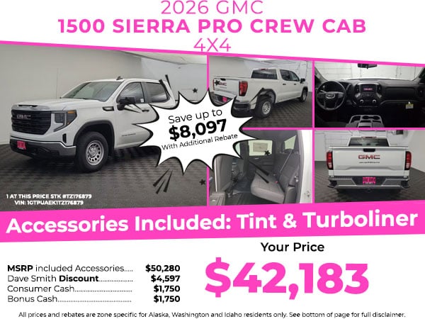 The vehicle offers Android Auto for seamless smartphone integration. The GMC Sierra stays safely in its lane with Lane Keep Assist. This vehicle features a hands-free Bluetooth phone system. Protect this GMC Sierra from unwanted accidents with a cutting edge backup camera system. This vehicle offers Apple CarPlay for seamless connectivity. This 2026 GMC Sierra 1500's Lane Departure Warning helps keep you in your lane. This vehicle has a 4 Cyl, 2.7L high output engine. This unit is outfitted with an OnStar communication system. This unit shines with clean polished lines coated with an elegant white finish. This 2026 GMC Sierra 1500 has four wheel drive capabilities. Electronic Stability Control is one of many advanced safety features on this vehicle. The high efficiency automatic transmission shifts smoothly and allows you to relax while driving. Easily set your speed in this 2026 GMC Sierra 1500 with a state of the art cruise control system. Increase or decrease velocity with the touch of a button.