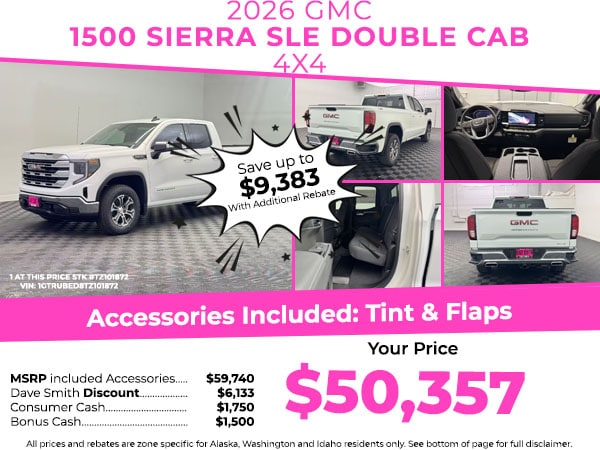 The GMC Sierra offers Automatic Climate Control for personalized comfort. An off-road package is equipped on this GMC Sierra. Apple CarPlay: Seamless smartphone integration for the vehicle - stay connected and entertained on the go! This 1/2 ton pickup stays safely in its lane with Lane Keep Assist. This GMC Sierra has auto-adjust speed for safe following. Never get into a cold vehicle again with the remote start feature on this 1/2 ton pickup. It is pure luxury with a heated steering wheel. This 2026 GMC Sierra 1500's Lane Departure Warning keeps you safe by alerting you when you drift from your lane. The steering wheel audio controls on this 1/2 ton pickup keep the volume and station within easy reach. It comes equipped with Android Auto for seamless smartphone integration on the road. You'll never again be lost in a crowded city or a country region with the navigation system on the vehicle.