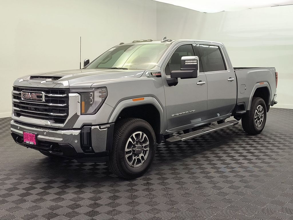 SLT Convenience Package: Ventilated Driver and Front Passenger Seats; Bose Premium 7-Speaker Sound System; 2 Charge/data USB Ports Inside Center Console; LED Smoked Amber Roof Marker Lamps; Wireless Charging; Front Bucket Seats. SLT Preferred Package: Heated 2nd Row Outboard Seats; Power Sliding Rear Window with Defogger; Universal Home Remote; Adaptive Cruise Control. SLT Premium Package: Spray-On Pickup Bedliner with GMC Logo; 6" Rectangular Chromed Tubular Assist Steps. Sierra HD Pro Safety Plus Package: HD Surround Vision; Trailer Side Blind Zone Alert; Rear Cross Traffic Alert; Ultrasonic Front and Rear Park Assist; Safety Alert Seat; Trailer Cam Provisions and Trailer Viewing Software; Bed View Camera with Two Trailer Camera Provisions. Preferred Equipment Group 4SA: LED Cargo Area Lighting; SiriusXM with 360L Trial Subscription; Remote Vehicle Starter System; Electric Rear-Window Defogger; Chrome Surround Grille with Chrome Insert Bars; Unauthorized Entry Theft-Deterrent System; Front Rain-Sensing Wipers; Sierra HD Pro Safety; Wireless Phone Projection; 120-Volt Instrument Panel Power Outlet; Heated Driver and Front Outboard Passenger Seats; 2 Charge/data USB Ports; Steering Wheel Audio Controls; 2 Charge-Only Rear USB Ports; OnStar Services Capable; 120-Volt Bed Mounted Power Outlet; Power Front Passenger Windows with Express Up/down; 2-Speed Active Transfer Case; Deep-Tinted Glass; 6.6L V8 with Direct Injection and Variable Valve Timing Engine; 6-Speaker Audio System Feature; Manual Tilt-Wheel/telescoping Steering Column; Keyless Open and Start; ProGrade Trailering System; Push Button Start; Rear Wheelhouse Liners. Gooseneck/5th Wheel Prep Package. Power Sunroof. Body Color Wheel Arch Moldings. 6" Rectangular Chromed Tubular Assist Steps. Spray-On Pickup Bedliner with GMC Logo. Sterling Metallic. High Idle Switch. LED Smoked Amber Roof Marker Lamps. **Equipment listed is based on original vehicle build and subject to change. Please confirm the accuracy of the included equipment by calling the dealer prior to purchase.**