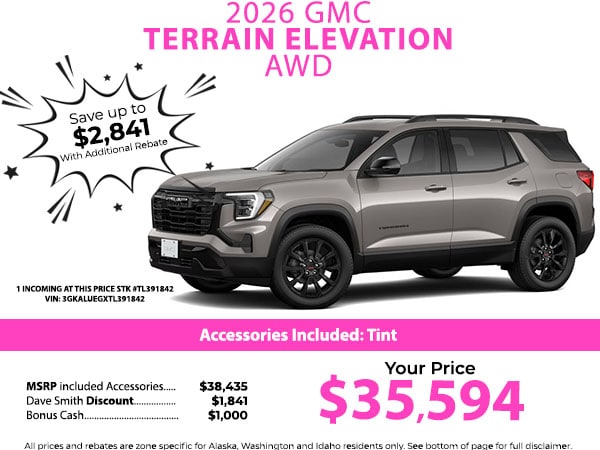 Start this mid-size suv from inside with remote start. This GMC Terrain has auto-adjust speed for safe following. Bluetooth technology is built into the GMC Terrain, keeping your hands on the steering wheel and your focus on the road. This 2026 GMC Terrain 's Lane Departure Warning keeps you safe by alerting you when you drift from your lane. Keep your hands warm all winter with a heated steering wheel in this GMC Terrain . The GMC Terrain offers Automatic Climate Control for personalized comfort. Lane Keep Assist in this vehicle helps maintain safe driving by gently steering to stay within the lane. The installed navigation system will keep you on the right path. Protect this unit from unwanted accidents with a cutting edge backup camera system. Set the temperature exactly where you are most comfortable in this model. The fan speed and temperature will automatically adjust to maintain your preferred zone climate.