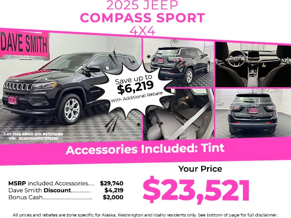 This vehicle features a hands-free Bluetooth phone system. This 2025 Jeep Compass 's Forward Collision Warning system alerts the driver to potential front-end collisions, enhancing safety. See what's behind you with the back up camera on the vehicle. This model is painted with a sleek and sophisticated black color. It has a 4 Cyl, 2.0L high output engine. When you encounter slick or muddy roads, you can engage the four wheel drive on the Jeep Compass and drive with confidence. The Jeep Compass has an automatic transmission. This Jeep Compass is equipped with a gasoline engine. Easily set your speed in this model with a state of the art cruise control system. Increase or decrease velocity with the touch of a button. The Electronic Stability Control will keep you on your intended path. The spacious cabin accommodates your family and friends in comfort. Take it to the mountains or the beach. this Jeep Compass can handle it all.