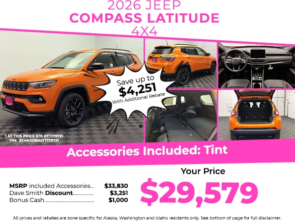 Start this mid-size suv from inside with remote start. Protect the Jeep Compass from unwanted accidents with a cutting edge backup camera system. Keep your hands warm all winter with a heated steering wheel in this Jeep Compass . with XM/Sirus Satellite Radio you are no longer restricted by poor quality local radio stations while driving this 2026 Jeep Compass . Anywhere on the planet, you will have hundreds of digital stations to choose from. This mid-size suv keeps you comfortable with Auto Climate. This model features a hands-free Bluetooth phone system. This 2026 Jeep Compass 's Forward Collision Warning feature alerts drivers to potential front-end collisions. This unit has an attractive deep orange exterior. This Jeep Compass has a 4 Cyl, 2.0L high output engine. Load groceries and much more with ease into the vehicle thanks to the power liftgate. Maintaining a stable interior temperature in the Jeep Compass is easy with the climate control system.
