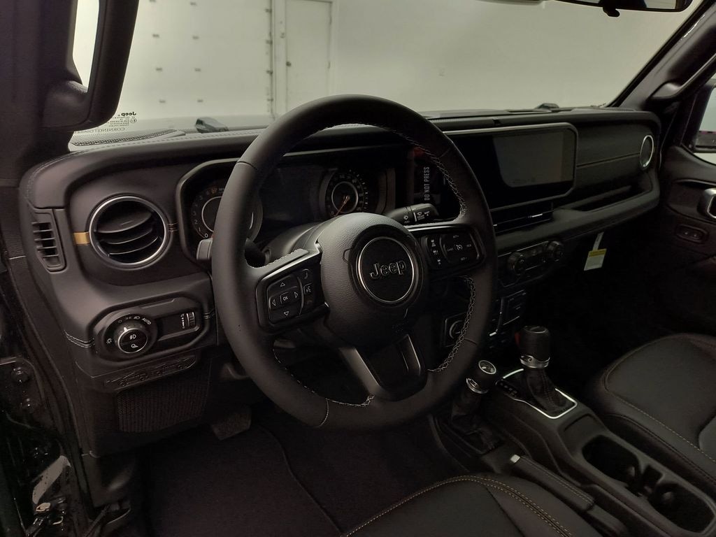 Quick Order Package 24H Sahara: Heated Front Seats; 18 X 7.5 Machined/Painted Gray Wheels; 255/70R18 BSW All Season Tires; Body Color Fender Flares (2-Piece); Heated Steering Wheel; Corning Gorilla Glass; Security Alarm; Sahara; Remote Start System; Advanced Brake Assist; Body Color 3-Piece Hard Top; Automatic Headlamps; Normal Duty Plus Suspension; Air Conditioning W/Auto Temp Control; Deep Tint Sunscreen Windows; Central ADAS Decision Module (CADM); Premium McKinley Trimmed Seats; Full Speed Forward Collision Warning Plus; Emergency/Assistance Call; 110 MPH Vehicle Max Speed Calibration; Front Door Locks 2-Door Passive Entry; Cluster 7.0 TFT Color Display; Power Heated Mirrors; Universal Garage Door Opener; Daytime Running Lamp System; Sahara Badge Neutral Gray; Premium Wrapped Steering Wheel; Sun Visors W/Illuminated Vanity Mirrors. LED Headlamp & Fog Lamp Group: Daytime Running Lamps LED Accents; Front LED Fog Lamps; LED Premium Reflector Headlamps. Alpine Premium Audio System. MOPAR Hardtop Headliner. Black Clearcoat. **Equipment listed is based on original vehicle build and subject to change. Please confirm the accuracy of the included equipment by calling the dealer prior to purchase.**