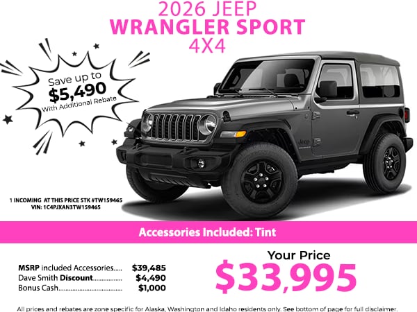 An off-road package is installed on the Jeep Wrangler so you are ready for your four-wheeling best. This 2026 Jeep Wrangler has automated speed control that adjusts to maintain a safe following distance, enhancing highway driving convenience. The vehicle offers Android Auto for seamless smartphone integration. This mid-size suv offers Apple CarPlay for seamless connectivity. Bluetooth technology is built into this unit, keeping your hands on the steering wheel and your focus on the road. See what's behind you with the back up camera on it. This vehicle projects refinement with a racy metallic gray exterior. Set the temperature exactly where you are most comfortable in this Jeep Wrangler. The fan speed and temperature will automatically adjust to maintain your preferred zone climate. This model has a 4 Cyl, 2.0L high output engine. When you encounter slick or muddy roads, you can engage the four wheel drive on this mid-size suv and drive with confidence.