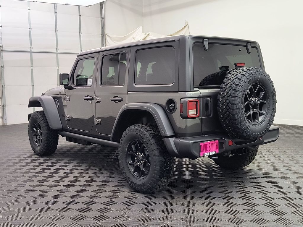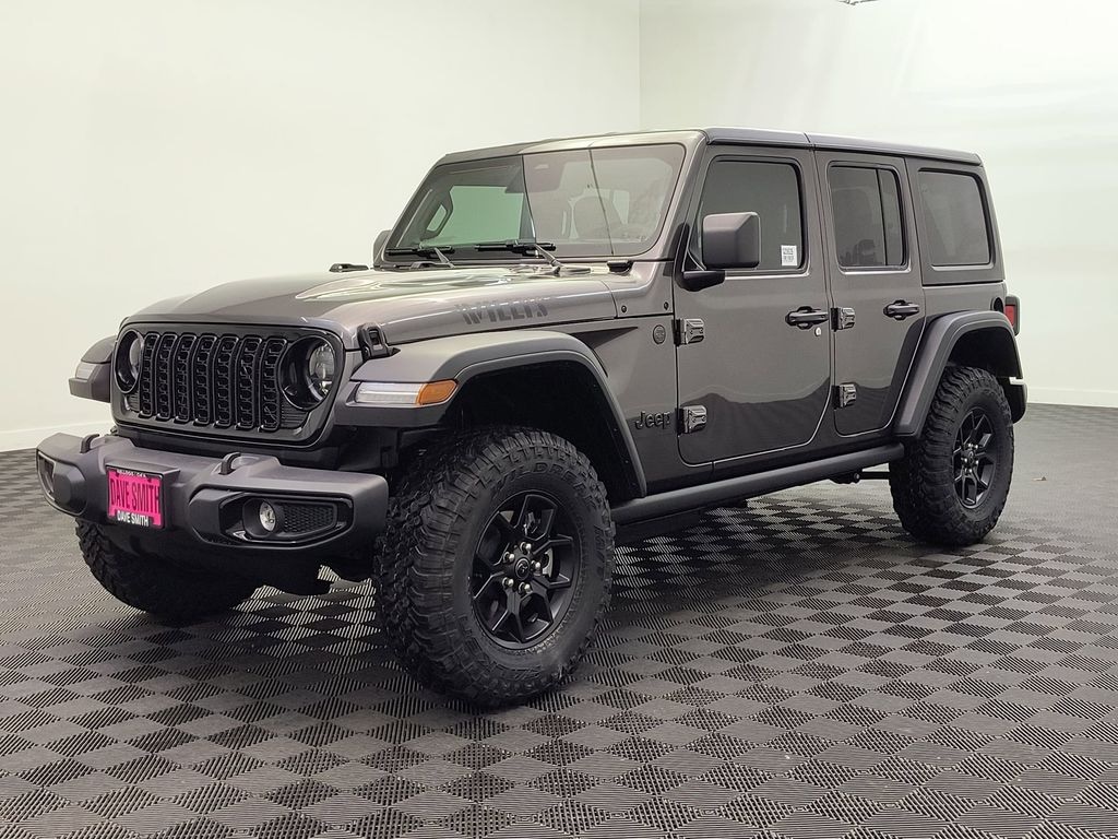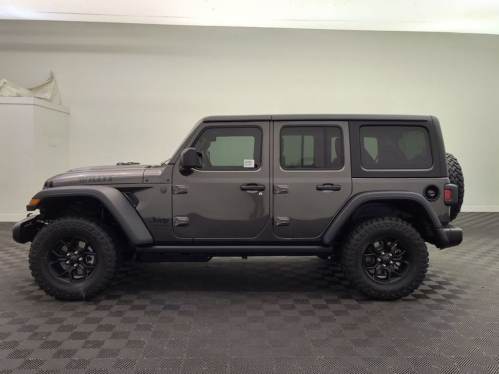 Convenience Group: Emergency/Assistance Call; 2-Door Passive Entry. Front Door Locks; Remote Start System; Cluster 7.0 TFT Color Display; Universal Garage Door Opener; Heated Front Seats; Air Conditioning W/Auto Temp Control; Heated Steering Wheel; Air Filtering. Quick Order Package 24W Willys: 7 & 4 Pin Wiring Harness; Conventional Differential Front Axle; 4-Wheel Drive Swing Gate Decal; Black Grille; MOPAR All-Weather Floor Mats; Injection Molded Black Rear Bumper; Dana M210 Wide HD Tube Front Axle; Daytime Running Lamps LED Accents; Front LED Fog Lamps; LED Premium Reflector Headlamps; E-Locker Rear Axle; Corning Gorilla Glass; Security Alarm; 4.10 Rear Axle Ratio; 5. 675 lbs GVWR; Class II Receiver Hitch; Mold In Color Bumper W/Gloss Black; Advanced Brake Assist; Willy's Suspension; LT285/70R17C BSW Mud Terrain Tires; Automatic Headlamps; Deep Tint Sunscreen Windows; Off-Road Plus Mode; 17 X 7.5 Painted Black Wheels; Willys Hood Decal; Full Speed Forward Collision Warning Plus; Rock Protection Sill Rails; Power Heated Mirrors; Enhanced Adaptive Cruise Control; Auxiliary Switches; Dana M220 Wide Rear Axle; Molded in Color Rubicon Highline Flare; Premium Wrapped Steering Wheel; Sun Visors W/Illuminated Vanity Mirrors. Trailer Tow & Aux Switch Group: Class II Receiver Hitch; 7 & 4 Pin Wiring Harness; Auxiliary Switches. Quick Order Package 23W Willys. Black 3-Piece Hard Top. MOPAR Hardtop Headliner. Granite Crystal Metallic Clearcoat. **Equipment listed is based on original vehicle build and subject to change. Please confirm the accuracy of the included equipment by calling the dealer prior to purchase.**