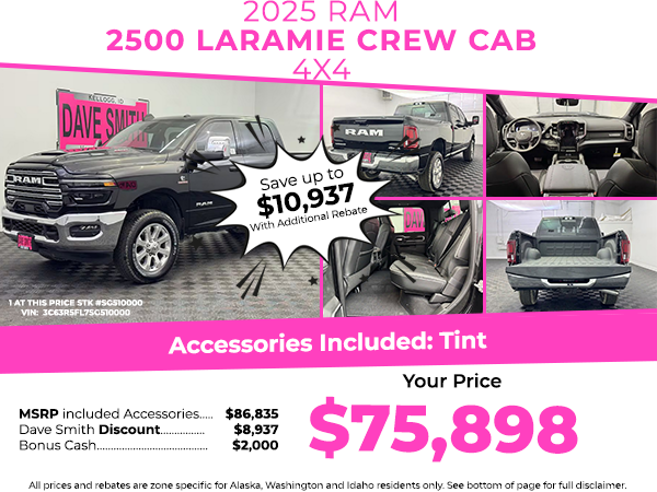 Cold Weather Group: Engine Block Heater; MOPAR Winter Front Grille Cover. Laramie Level 1 Plus Equipment Group: Center Stop Lamp with Cargo View Camera; Rain Sensitive Windshield Wipers; Power Adjustable Pedals with Memory; LED Bed Lighting; Traffic Sign Recognition; Auto Power-Folding Mirrors; Adaptive Steering System; Exterior Mirrors with Heating Element; Auto Dim Exterior Mirror; Anti-Spin Differential Rear Axle; Mirror Running Lights; Drowsy Driver Detection; MOPAR Deployable Bed Step; Foam Bottle Insert (door Trim Panel); Power Adjustable Convex Aux Mirrors; Active Lane Management System; Forward and Reverse Utility Lights; Leather Trimmed Bucket Seats; Power Heated Fold Telescopic Mirrors with Memory; Exterior Mirrors with Supplemental Signals; Exterior Mirrors Courtesy Lamps; Remote Tailgate Release; MOPAR Spray in Bedliner; Auto High Beam Headlamp Control; Chrome Exterior Mirrors; Exterior Mirrors with Memory; Power Adjust Mirrors; 2nd Row in Floor Storage Bins; Power Telescoping Mirrors; Auto Dim Exterior Passenger Mirror; Auto Adjust in Reverse Exterior Mirrors. Quick Order Package 24H Laramie. Sport Appearance Package: LT285/60R20E OWL On/off Road Tires; Center Hub; Body Color Grille Surround; Sport Performance Hood; Sport Decal; 20 X 8.0 Diamond Cut Face Aluminum Wheels. Towing Technology Group: Center Stop Lamp with Cargo View Camera; Surround View Camera System; Trailer Tire Pressure Monitoring System; Trailer Reverse Guidance. Chrome Bumper Package: Bright Rear Bumper; Bright Front Bumper. Power Sunroof. Leather Trimmed Bucket Seats. Center Stop Lamp with Cargo View Camera. Diamond Black Crystal PC. **Equipment listed is based on original vehicle build and subject to change. Please confirm the accuracy of the included equipment by calling the dealer prior to purchase.**