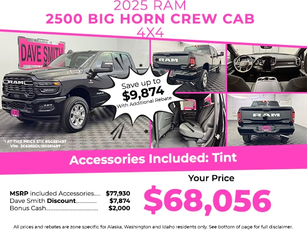 Start this model from inside with remote start. The vehicle offers Apple CarPlay for seamless connectivity. Protect this unit from unwanted accidents with a cutting edge backup camera system. The installed navigation system will keep you on the right path. Keep your hands warm all winter with a heated steering wheel in the Ram 2500 . Bluetooth technology is built into this 2025 Ram 2500 , keeping your hands on the steering wheel and your focus on the road. This 2025 Ram 2500 has auto-adjust speed for safe following. with XM/Sirus Satellite Radio you are no longer restricted by poor quality local radio stations while driving this Ram 2500. Anywhere on the planet, you will have hundreds of digital stations to choose from. This vehicle offers Android Auto for seamless smartphone integration. An off-road package is equipped on this 2025 Ram 2500 . The vehicle's Forward Collision Warning feature alerts drivers to potential front-end collisions.