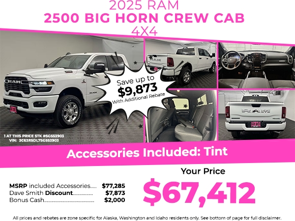Keep your hands warm all winter with a heated steering wheel in this Ram 2500 . Apple CarPlay: Seamless smartphone integration for this 2025 Ram 2500 - stay connected and entertained on the go! See what's behind you with the back up camera on this unit. The installed navigation system will keep you on the right path. This vehicle comes equipped with Android Auto for seamless smartphone integration on the road. The vehicle's Forward Collision Warning system alerts the driver to potential front-end collisions, enhancing safety. Start this Ram 2500 from inside with remote start. It features a hands-free Bluetooth phone system. The vehicle is equipped with the latest generation of XM/Sirius Radio. An off-road package is installed on this 2025 Ram 2500 so you are ready for your four-wheeling best. The vehicle has auto-adjust speed for safe following. This model has adjustable pedals that are luxurious and safety conscious.