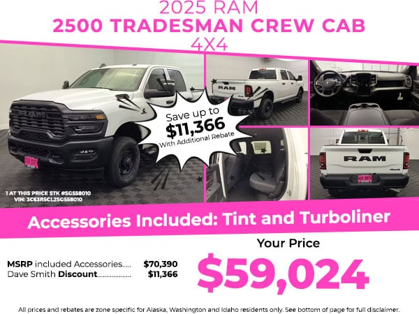 The Ram 2500 features a hands-free Bluetooth phone system. This 3/4 ton pickup offers Android Auto for seamless smartphone integration. The Ram 2500 has auto-adjust speed for safe following. An off-road package is installed on this 2025 Ram 2500 so you are ready for your four-wheeling best. You'll never again be lost in a crowded city or a country region with the navigation system on this 2025 Ram 2500 . Apple CarPlay: Seamless smartphone integration for this Ram 2500 - stay connected and entertained on the go! The rear parking assist technology on the vehicle will put you at ease when reversing. The system alerts you as you get closer to an obstruction. Protect this 2025 Ram 2500 from unwanted accidents with a cutting edge backup camera system. This 3/4 ton pickup offers Automatic Climate Control for personalized comfort. with XM/Sirus Satellite Radio you are no longer restricted by poor quality local radio stations while driving this model. Anywhere on the planet, you will have hundreds of digital stations to choose from.