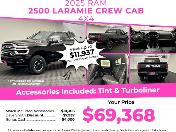 Protect the Ram 2500 from unwanted accidents with a cutting edge backup camera system. The leather seats in this 3/4 ton pickup are a must for buyers looking for comfort, durability, and style. You'll never again be lost in a crowded city or a country region with the navigation system on this vehicle. This 2025 Ram 2500 has automated speed control that adjusts to maintain a safe following distance, enhancing highway driving convenience. It features a hands-free Bluetooth phone system. This 3/4 ton pickup keeps you comfortable with Auto Climate. This 3/4 ton pickup is pure luxury with a heated steering wheel. This model's Forward Collision Warning feature alerts drivers to potential front-end collisions. This 3/4 ton pickup comes equipped with Android Auto for seamless smartphone integration on the road. Apple CarPlay: Seamless smartphone integration for this Ram 2500 - stay connected and entertained on the go! This model has adjustable pedals that are luxurious and safety conscious.