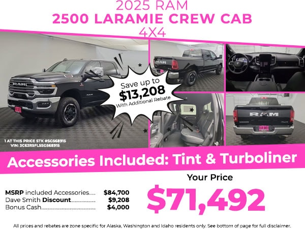 You'll never again be lost in a crowded city or a country region with the navigation system on this 3/4 ton pickup. It is equipped with the latest generation of XM/Sirius Radio. The leather seats in this 2025 Ram 2500 are a must for buyers looking for comfort, durability, and style. An off-road package is equipped on this unit. This model has auto-adjust speed for safe following. Keep your hands warm all winter with a heated steering wheel in this vehicle . This unit comes equipped with Android Auto for seamless smartphone integration on the road. See what's behind you with the back up camera on this model. The vehicle's Forward Collision Warning system alerts the driver to potential front-end collisions, enhancing safety. Apple CarPlay: Seamless smartphone integration for the Ram 2500 - stay connected and entertained on the go! Enjoy your music even more with the premium sound system in this vehicle.