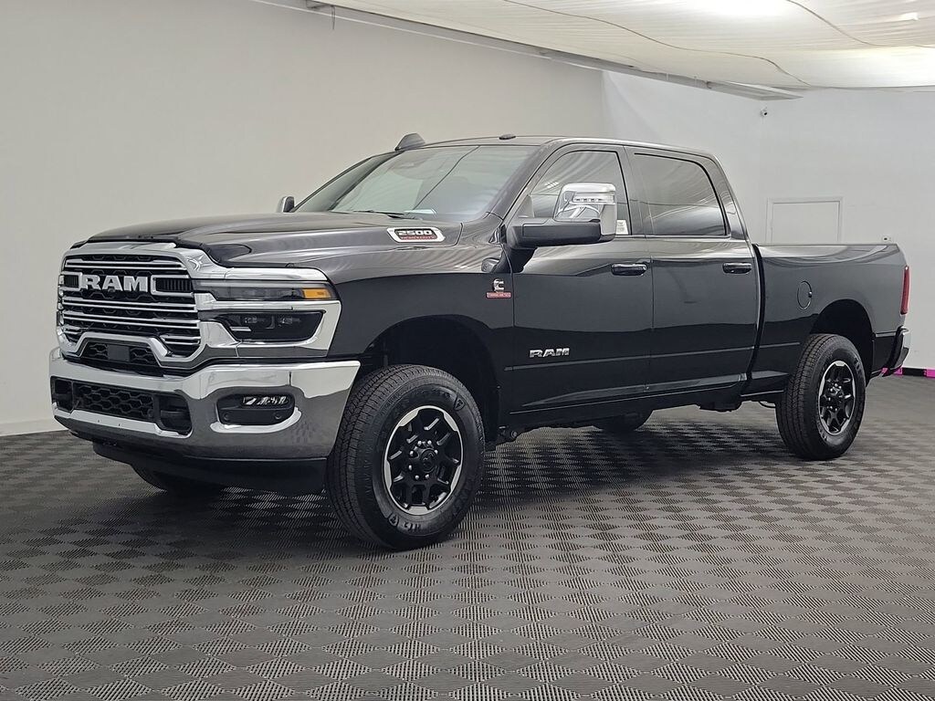 Cold Weather Group: Engine Block Heater; MOPAR Winter Front Grille Cover. Laramie Level 2 Equipment Group: Google Android Auto; SiriusXM Radio Service; Rain Sensitive Windshield Wipers; Power Adjustable Pedals with Memory; Integrated Voice Command with Bluetooth; Connectivity - US/Canada; Emergency Vehicle Alert System (EVAS); Auto Power-Folding Mirrors; GPS Navigation; 4G LTE Wi-Fi Hot Spot; GPS Antenna Input; Exterior Mirrors with Heating Element; Auto Dim Exterior Mirror; SiriusXM with 360L; Anti-Spin Differential Rear Axle; Global Telematics Box Module; Connected Travel and Traffic Services; Mirror Running Lights; Foam Bottle Insert (door Trim Panel); Alexa Built-In; Apple CarPlay; Power Adjustable Convex Aux Mirrors; Off-Road Info Pages; Forward and Reverse Utility Lights; Selectable Tire Fill Alert; Trailer Tow Pages; Disassociated Touchscreen Display; Leather Trimmed Bucket Seats; HD Radio; 14.4 Touchscreen Display; Power Heated Fold Telescopic Mirrors with Memory; Exterior Mirrors with Supplemental Signals; Exterior Mirrors Courtesy Lamps; Uconnect 5 Nav with 14.4 Display; Remote Tailgate Release; 17 Speaker Harman/kardon Premium Sound; Auto High Beam Headlamp Control; Chrome Exterior Mirrors; Exterior Mirrors with Memory; Power Adjust Mirrors; 2nd Row in Floor Storage Bins; Power Telescoping Mirrors; Auto Dim Exterior Passenger Mirror; Auto Adjust in Reverse Exterior Mirrors. Quick Order Package 24H Laramie. Chrome Bumper Package: Bright Rear Bumper; Bright Front Bumper. Auto Level Rear Air Suspension. Leather Trimmed Bucket Seats. Diamond Black Crystal PC. Transfer Case Skid Plate Shield. **Equipment listed is based on original vehicle build and subject to change. Please confirm the accuracy of the included equipment by calling the dealer prior to purchase.**
