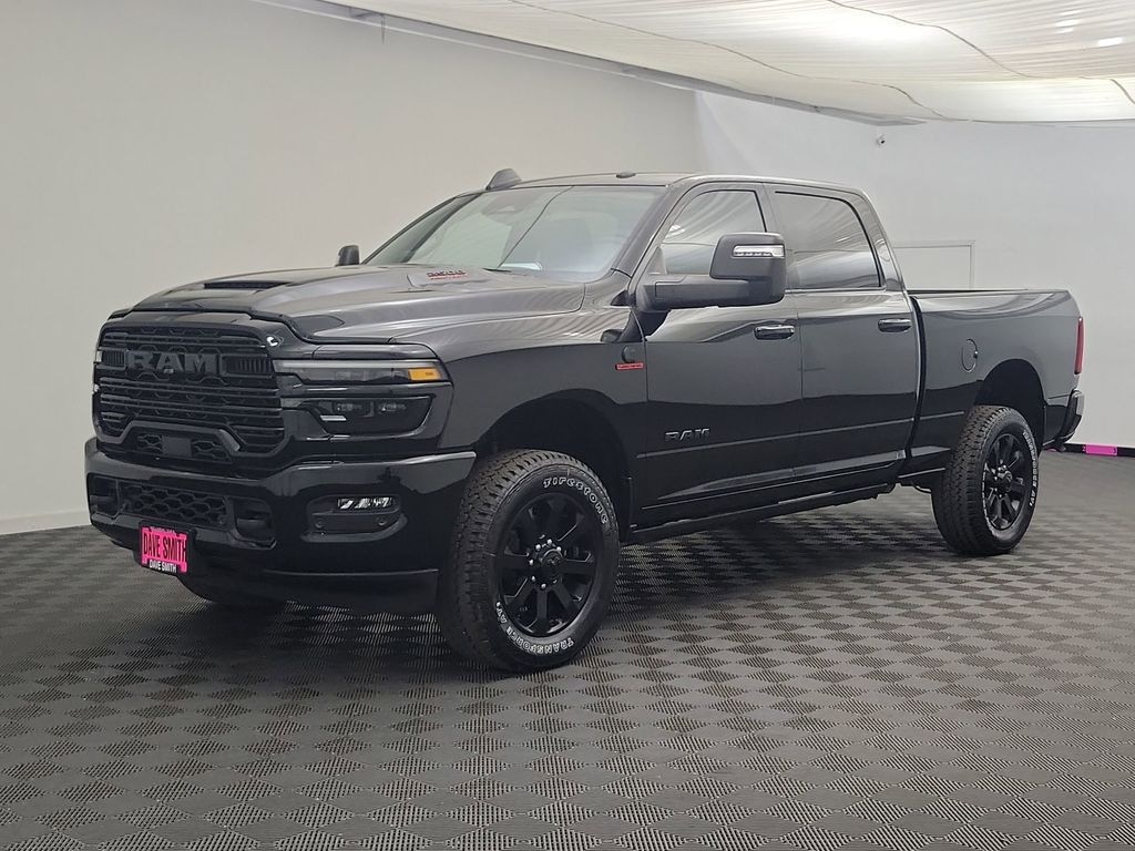 Cold Weather Group: Engine Block Heater; MOPAR Winter Front Grille Cover. Laramie Level 2 Plus Equipment Group: Google Android Auto; SiriusXM Radio Service; Power Adjustable Pedals with Memory; Integrated Voice Command with Bluetooth; Emergency Vehicle Alert System (EVAS); Power Deployable Running Boards; Auto Power-Folding Mirrors; Anti-Spin Differential Rear Axle; Mirror Running Lights; Drowsy Driver Detection; MOPAR Deployable Bed Step; Alexa Built-In; Apple CarPlay; Power Adjustable Convex Aux Mirrors; Active Lane Management System; Forward and Reverse Utility Lights; Disassociated Touchscreen Display; Remote Tailgate Release; 17 Speaker Harman/kardon Premium Sound; 2nd Row in Floor Storage Bins; Center Stop Lamp with Cargo View Camera; Rain Sensitive Windshield Wipers; LED Bed Lighting; Traffic Sign Recognition; Connectivity - US/Canada; GPS Navigation; 4G LTE Wi-Fi Hot Spot; Adaptive Steering System; GPS Antenna Input; Exterior Mirrors with Heating Element; Auto Dim Exterior Mirror; SiriusXM with 360L; Global Telematics Box Module; Connected Travel and Traffic Services; Foam Bottle Insert (door Trim Panel); Off-Road Info Pages; Selectable Tire Fill Alert; Trailer Tow Pages; Leather Trimmed Bucket Seats; HD Radio; 14.4 Touchscreen Display; Power Heated Fold Telescopic Mirrors with Memory; Exterior Mirrors with Supplemental Signals; Exterior Mirrors Courtesy Lamps; Uconnect 5 Nav with 14.4 Display; MOPAR Spray in Bedliner; Auto High Beam Headlamp Control; Chrome Exterior Mirrors; Exterior Mirrors with Memory; Power Adjust Mirrors; Power Telescoping Mirrors; Auto Dim Exterior Passenger Mirror; Auto Adjust in Reverse Exterior Mirrors. Quick Order Package 24H Laramie. Night Edition: LT285/60R20E OWL On/off Road Tires; Black Exterior Truck Badging; 20 X 8.0 Black Painted Aluminum Wheels; Gloss Black Grille Billets/accents; Body Color Grille Surround; Sport Performance Hood; Black Exterior Mirrors; Black Wheel Center Hub. Power Sunroof. Power Deployable Running Boards. Leather Trimmed Bucket Seats. Center Stop Lamp with Cargo View Camera. Diamond Black Crystal PC. **Equipment listed is based on original vehicle build and subject to change. Please confirm the accuracy of the included equipment by calling the dealer prior to purchase.**