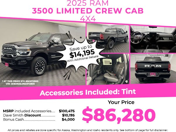See what's behind you with the back up camera on it. Apple CarPlay: Seamless smartphone integration for the Ram 3500 - stay connected and entertained on the go! The leather seats in this Ram 3500 are a must for buyers looking for comfort, durability, and style. This 1 ton pickup offers Android Auto for seamless smartphone integration. This 2025 Ram 3500 's Forward Collision Warning feature alerts drivers to potential front-end collisions. The installed navigation system will keep you on the right path. This Ram 3500 has auto-adjust speed for safe following. This vehicle is pure luxury with a heated steering wheel. Bluetooth technology is built into this model, keeping your hands on the steering wheel and your focus on the road. The vehicle is painted with a sleek and sophisticated black color. This unit has four wheel drive capabilities. This vehicle has a 6 Cyl, 6.7L high output engine.