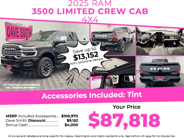 Apple CarPlay: Seamless smartphone integration for this vehicle - stay connected and entertained on the go! This unit has automated speed control that adjusts to maintain a safe following distance, enhancing highway driving convenience. This Ram 3500's Forward Collision Warning system alerts the driver to potential front-end collisions, enhancing safety. Protect it from unwanted accidents with a cutting edge backup camera system. This Ram 3500 comes equipped with Android Auto for seamless smartphone integration on the road. You'll never again be lost in a crowded city or a country region with the navigation system on this 2025 Ram 3500 . Keep your hands warm all winter with a heated steering wheel in this model . The leather seats in it are a must for buyers looking for comfort, durability, and style. This model features a hands-free Bluetooth phone system. Set the temperature exactly where you are most comfortable in this 2025 Ram 3500 . The fan speed and temperature will automatically adjust to maintain your preferred zone climate.