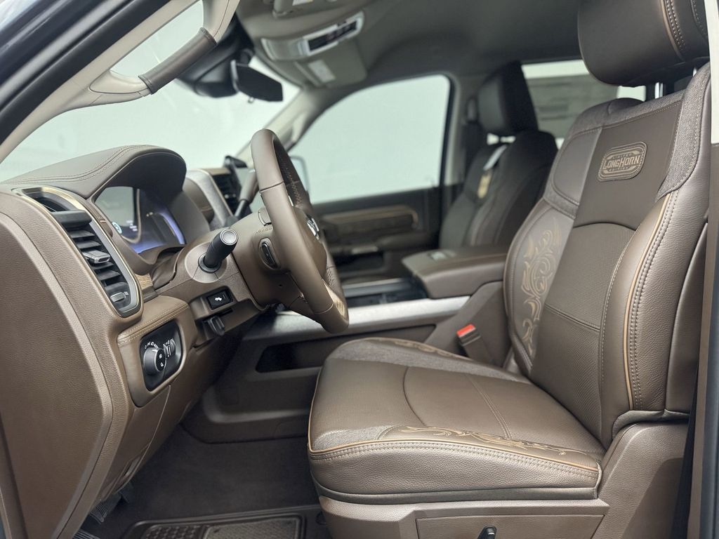 Cold Weather Group: Engine Block Heater; MOPAR Winter Front Grille Cover. Longhorn Level 1 Equipment Group: Active Lane Management System; MOPAR Spray in Bedliner; Center Stop Lamp with Cargo View Camera; Surround View Camera System; Drowsy Driver Detection; LED Bed Lighting; Power Deployable Running Boards; Traffic Sign Recognition; Trailer Tire Pressure Monitoring System; Trailer Reverse Guidance; Digital Rearview Mirror; Adaptive Steering System. Quick Order Package 24K Longhorn: Longhorn Instrument Cluster Theme 3. 50 Gallon Fuel Tank. Forged Blue Metallic. **Equipment listed is based on original vehicle build and subject to change. Please confirm the accuracy of the included equipment by calling the dealer prior to purchase.**
