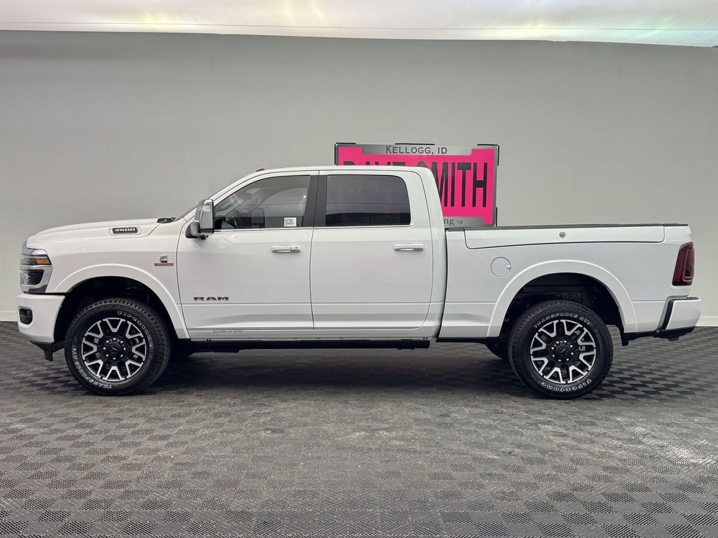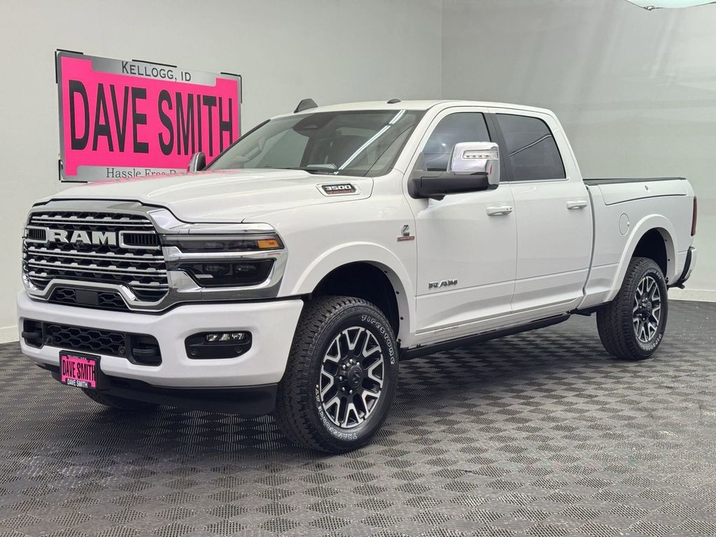 Keep your hands warm all winter with a heated steering wheel in the vehicle . Protect this unit from unwanted accidents with a cutting edge backup camera system. The Ram 3500's Forward Collision Warning feature alerts drivers to potential front-end collisions. You'll never again be lost in a crowded city or a country region with the navigation system on this 2025 Ram 3500 . The leather seats in this unit are a must for buyers looking for comfort, durability, and style. This 2025 Ram 3500 offers Apple CarPlay for seamless connectivity. This vehicle has auto-adjust speed for safe following. This 2025 Ram 3500 features a hands-free Bluetooth phone system. This model comes equipped with Android Auto for seamless smartphone integration on the road. This model has four wheel drive capabilities. This 1 ton pickup has a 6 Cyl, 6.7L high output engine. The vehicle embodies class and sophistication with its refined white exterior.