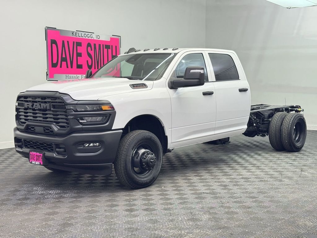 This vehicle offers Android Auto for seamless smartphone integration. See what's behind you with the back up camera on this 2025 Ram 3500 Chassis . The Ram 3500 Chassis's Forward Collision Warning system alerts the driver to potential front-end collisions, enhancing safety. This model features a hands-free Bluetooth phone system. Apple CarPlay: Seamless smartphone integration for this Ram 3500 Chassis - stay connected and entertained on the go! This model has automated speed control that adjusts to maintain a safe following distance, enhancing highway driving convenience. Greater towing safety becomes standard with the installed trailer brake. Quickly unlock this vehicle with keyless entry. The vehicle embodies class and sophistication with its refined white exterior. When you encounter slick or muddy roads, you can engage the four wheel drive on this unit and drive with confidence. The vehicle has a V8, 6.4L high output engine. This unit is built for driving comfort with a telescoping wheel.