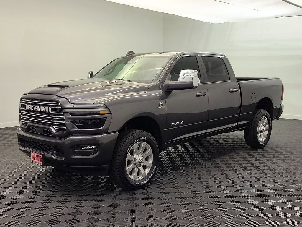 Cold Weather Group: Engine Block Heater; MOPAR Winter Front Grille Cover. Laramie Level 1 Plus Equipment Group: Center Stop Lamp with Cargo View Camera; Rain Sensitive Windshield Wipers; Power Adjustable Pedals with Memory; LED Bed Lighting; Traffic Sign Recognition; Auto Power-Folding Mirrors; Adaptive Steering System; Exterior Mirrors with Heating Element; Auto Dimming Exterior Mirrors; Mirror Running Lights; Drowsy Driver Detection; MOPAR Deployable Bed Step; Foam Bottle Insert (door Trim Panel); Power-Adjustable Convex Aux Mirrors; Active Lane Management System; Forward and Reverse Utility Lights; Leather Trimmed Bucket Seats; Power Heat Fold Memory Telescopic Mirrors; Exterior Mirrors with Supplemental Signals; Exterior Mirrors Courtesy Lamps; Remote Tailgate Release; MOPAR Spray in Bedliner; #1 Seat Foam Cushion; Auto High Beam Headlamp Control; Chrome Exterior Mirrors; Exterior Mirrors with Memory; Power Adjust Mirrors; 2nd Row in Floor Storage Bins; Power Telescoping Mirrors; Auto Dimming Exterior Passenger Mirror; Auto Adjust in Reverse Exterior Mirrors. Quick Order Package 24H Laramie. Sport Appearance Package: LT285/60R20E OWL On/off Road Tires; Center Hub; Body Color Grille Surround; Sport Performance Hood; Sport Decal; 20 X 8.0 Polished Aluminum Wheels. Power Sunroof. Leather Trimmed Bucket Seats. Center Stop Lamp with Cargo View Camera. Granite Crystal Met CC. **Equipment listed is based on original vehicle build and subject to change. Please confirm the accuracy of the included equipment by calling the dealer prior to purchase.**