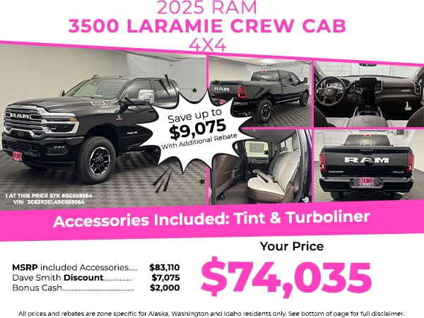 Protect this unit from unwanted accidents with a cutting edge backup camera system. An off-road package is equipped on this vehicle. It is equipped with the latest generation of XM/Sirius Radio. This unit's Forward Collision Warning feature alerts drivers to potential front-end collisions. The leather seats in this 1 ton pickup are a must for buyers looking for comfort, durability, and style. This model has auto-adjust speed for safe following. This Ram 3500 features a hands-free Bluetooth phone system. This model is pure luxury with a heated steering wheel. The installed navigation system will keep you on the right path. This 1 ton pickup offers Apple CarPlay for seamless connectivity. Enjoy your music even more with the premium sound system in this Ram 3500. It comes equipped with Android Auto for seamless smartphone integration on the road. The Ram 3500 has an elegant black exterior finish. The gas and brake pedals adjust allowing you to fine-tune them for personal fit and comfort.