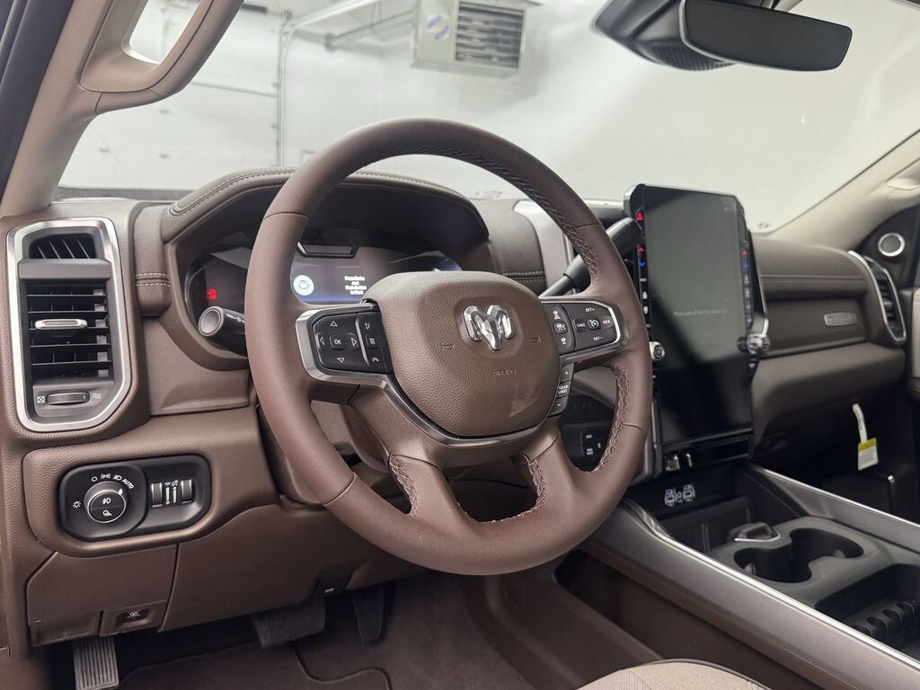 Cold Weather Group: Engine Block Heater; MOPAR Winter Front Grille Cover. Laramie Level 2 Equipment Group: Google Android Auto; SiriusXM Radio Service; Rain Sensitive Windshield Wipers; Power Adjustable Pedals with Memory; For Details Visit DriveUconnect.com; For More Info. Call 800-643-2112; Integrated Voice Command with Bluetooth; Connectivity - US/Canada; Emergency Vehicle Alert System (EVAS); Auto Power-Folding Mirrors; GPS Navigation; 4G LTE Wi-Fi Hot Spot; GPS Antenna Input; Exterior Mirrors with Heating Element; Auto Dimming Exterior Mirrors; SiriusXM with 360L; Global Telematics Box Module; Connected Travel and Traffic Services; Mirror Running Lights; Foam Bottle Insert (door Trim Panel); Alexa Built-In; Apple CarPlay; Power-Adjustable Convex Aux Mirrors; Off-Road Information Pages; Forward and Reverse Utility Lights; Selectable Tire Fill Alert; Trailer Tow Pages; Disassociated Touchscreen Display; Leather Trimmed Bucket Seats; HD Radio; 14.4 Touchscreen Display; Power Heat Fold Memory Telescopic Mirrors; Exterior Mirrors with Supplemental Signals; Exterior Mirrors Courtesy Lamps; Uconnect 5 Nav with 14.4 Display; Remote Tailgate Release; 17 Speaker Harman/kardon Premium Sound; #1 Seat Foam Cushion; Auto High Beam Headlamp Control; Chrome Exterior Mirrors; Exterior Mirrors with Memory; Power Adjust Mirrors; 2nd Row in Floor Storage Bins; Power Telescoping Mirrors; Auto Dimming Exterior Passenger Mirror; Auto Adjust in Reverse Exterior Mirrors. Quick Order Package 24H Laramie. Leather Trimmed Bucket Seats. Diamond Black Crystal PC. **Equipment listed is based on original vehicle build and subject to change. Please confirm the accuracy of the included equipment by calling the dealer prior to purchase.**