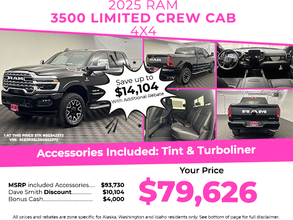 Cold Weather Group: Engine Block Heater; MOPAR Winter Front Grille Cover. Limited Level 1 Equipment Group: Active Lane Management System; MOPAR Spray in Bedliner; Center Stop Lamp with Cargo View Camera; Surround View Camera System; Drowsy Driver Detection; LED Bed Lighting; Power Deployable Running Boards; Traffic Sign Recognition; Trailer Tire Pressure Monitoring System; Trailer Reverse Guidance; Digital Rearview Mirror; Adaptive Steering System. Night Edition: 20 X 8.0 Night Edition Black Aluminum Wheels; Black Exterior Truck Badging; Body Color Grille Surround; Sport Performance Hood; Black Limited Grille; Black Wheel Center Hub. Quick Order Package 24M Limited. MOPAR 20K Direct Mount 5th Wheel Hitch. Diamond Black Crystal PC. 5th Wheel/gooseneck Towing Prep Group. **Equipment listed is based on original vehicle build and subject to change. Please confirm the accuracy of the included equipment by calling the dealer prior to purchase.**