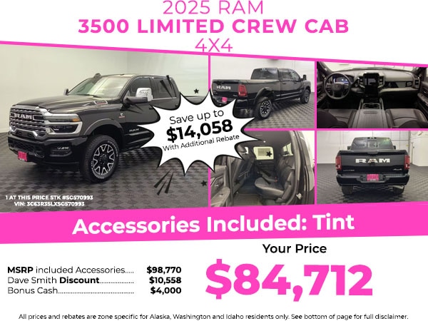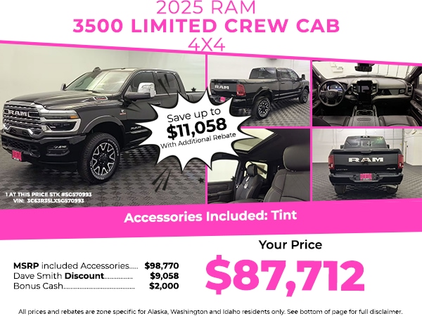 The Ram 3500 offers Android Auto for seamless smartphone integration. The installed navigation system will keep you on the right path. Protect the vehicle from unwanted accidents with a cutting edge backup camera system. The vehicle has automated speed control that adjusts to maintain a safe following distance, enhancing highway driving convenience. It's Forward Collision Warning system alerts the driver to potential front-end collisions, enhancing safety. This model is pure luxury with a heated steering wheel. This 1 ton pickup offers Apple CarPlay for seamless connectivity. Bluetooth technology is built into this 2025 Ram 3500 , keeping your hands on the steering wheel and your focus on the road. The leather seats in this Ram 3500 are a must for buyers looking for comfort, durability, and style. This 1 ton pickup has a 6 Cyl, 6.7L high output engine. This 2025 Ram 3500 is painted with a sleek and sophisticated black color.