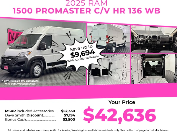 This 2025 Ram ProMaster 1500 offers Android Auto for seamless smartphone integration. It offers Apple CarPlay for seamless connectivity. The Ram ProMaster 1500's Forward Collision Warning feature alerts drivers to potential front-end collisions. This 2025 Ram ProMaster 1500 has automated speed control that adjusts to maintain a safe following distance, enhancing highway driving convenience. The vehicle features a hands-free Bluetooth phone system. See what's behind you with the back up camera on this vehicle. This 2025 Ram ProMaster 1500 embodies class and sophistication with its refined white exterior. This model has a V6, 3.6L high output engine. Set the temperature exactly where you are most comfortable in this unit. The fan speed and temperature will automatically adjust to maintain your preferred zone climate. Front wheel drive on it gives you better traction and better fuel economy. Electronic Stability Control is one of many advanced safety features on the Ram ProMaster 1500.
