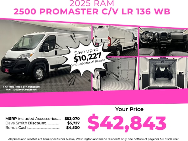 Apple CarPlay: Seamless smartphone integration for this Ram ProMaster 2500 - stay connected and entertained on the go! It's Forward Collision Warning system alerts the driver to potential front-end collisions, enhancing safety. The vehicle offers Android Auto for seamless smartphone integration. Protect this 2025 Ram ProMaster 2500 from unwanted accidents with a cutting edge backup camera system. It has automated speed control that adjusts to maintain a safe following distance, enhancing highway driving convenience. This Ram ProMaster 2500 features a hands-free Bluetooth phone system. The Ram ProMaster 2500 has a V6, 3.6L high output engine. Set the temperature exactly where you are most comfortable in this model. The fan speed and temperature will automatically adjust to maintain your preferred zone climate. This Ram ProMaster 2500 shines with clean polished lines coated with an elegant white finish. Front wheel drive on this 3/4 ton van gives you better traction and better fuel economy.