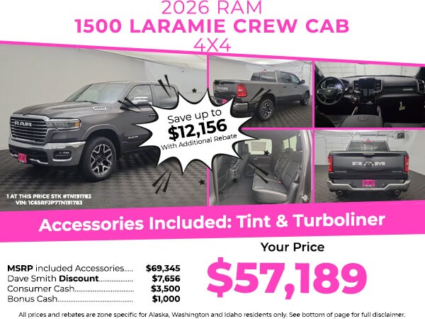 The vehicle has auto-adjust speed for safe following. The leather seats in this unit are a must for buyers looking for comfort, durability, and style. This unit's Forward Collision Warning system alerts the driver to potential front-end collisions, enhancing safety. See what's behind you with the back up camera on this model. This 2026 Ram 1500 offers Android Auto for seamless smartphone integration. This 2026 Ram 1500 keeps you comfortable with Auto Climate. You'll never again be lost in a crowded city or a country region with the navigation system on it. The state of the art park assist system will guide you easily into any spot. Apple CarPlay: Seamless smartphone integration for this 1/2 ton pickup - stay connected and entertained on the go! Never get into a cold vehicle again with the remote start feature on this 1/2 ton pickup. The Ram 1500 is pure luxury with a heated steering wheel.