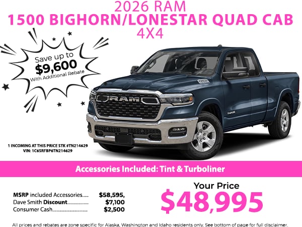 This 1/2 ton pickup's Forward Collision Warning system alerts the driver to potential front-end collisions, enhancing safety. The Ram 1500 comes equipped with Android Auto for seamless smartphone integration on the road. with XM/Sirus Satellite Radio you are no longer restricted by poor quality local radio stations while driving this 2026 Ram 1500 . Anywhere on the planet, you will have hundreds of digital stations to choose from. The satellite radio system in it gives you access to hundreds of nation-wide radio stations with a clear digital signal. This model features a hands-free Bluetooth phone system. This unit is pure luxury with a heated steering wheel. This vehicle's Lane Departure Warning keeps you safe by alerting you when you drift from your lane. The vehicle offers Apple CarPlay for seamless connectivity. Start this 1/2 ton pickup from inside with remote start. See what's behind you with the back up camera on this Ram 1500.