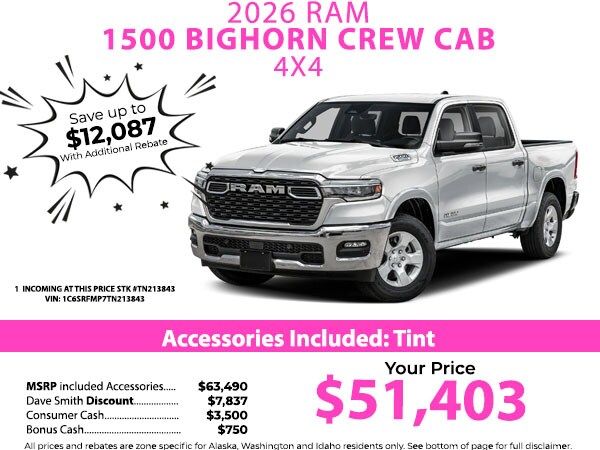 Quick Order Package 21Z Big Horn. Big Horn Level 2 Equipment Group: Google Android Auto; SiriusXM Radio Service; USB Host Flip; Power Adjustable Pedals; Leather Wrapped Steering Wheel; Integrated Voice Command with Bluetooth; 12 Touchscreen Display; Glove Box Lamp; Auto Power-Folding Mirrors; 115V Auxiliary Rear Power Outlet; Media Hub with 2 Charge Only USBs; Heated Front Seats; Security Alarm; Black Premium Power Mirrors; Apple CarPlay; Premium Overhead Console; 9 Amplified Speakers with Subwoofer; Disassociated Touchscreen Display; Body Color Fender Flares; Remote Tailgate Release; 115V Auxiliary Power Outlet; LED Dome Lamp with On/off Switch; Universal Garage Door Opener; 2nd Row in Floor Storage Bins; Sun Visors with Illuminated Vanity Mirrors; LED Footwell Lighting; Rear Window Defroster; Integrated Center Stack Radio; Rear View Auto Dim Mirror; Rear Power Sliding Window; Connectivity - US/Canada; GPS Navigation; 4G LTE Wi-Fi Hot Spot; GPS Antenna Input; Overhead LED Lamps; 20 X 9 Aluminum Chrome Clad Wheels; Exterior Mirrors with Heating Element; Auto Dim Exterior Driver Mirror; SiriusXM with 360L; Global Telematics Box Module; Connected Travel and Traffic Services; Heated Steering Wheel; Black Exterior Mirrors; Configurable Drive Mode; 400W Inverter; HD Radio; Deluxe Cloth Bucket Seats; Uconnect 5 Navigation with 12.0 Display Radio; Exterior Mirrors with Supplemental Signals; Steering Wheel Mounted Audio Controls; Exterior Mirrors Courtesy Lamps; Air Conditioning ATC with Dual Zone Control; Cluster 7.0 TFT Color Display; Convex Wide-Angle Exterior Mirror Insert. 20 X 9 Aluminum Chrome Clad Wheels. 9 Amplified Speakers with Subwoofer. Anti-Spin Differential Rear Axle. Trailer Brake Control. 3.92 Rear Axle Ratio. **Equipment listed is based on original vehicle build and subject to change. Please confirm the accuracy of the included equipment by calling the dealer prior to purchase.**