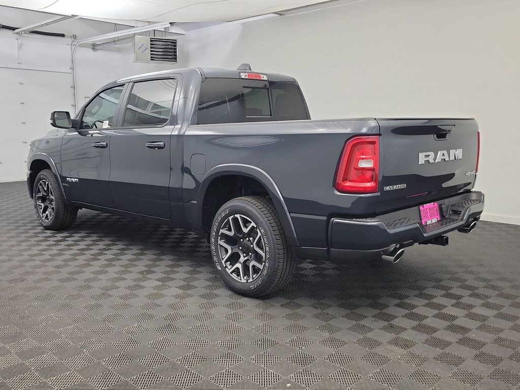Laramie Level 2 Equipment Group: Google Android Auto; SiriusXM Radio Service; USB Host Flip; Rain Sensitive Windshield Wipers; Integrated Center Stack Radio; Front Passenger Interactive Display; Integrated Voice Command with Bluetooth; Connectivity - US/Canada; GPS Navigation; 4G LTE Wi-Fi Hot Spot; GPS Antenna Input; SiriusXM with 360L; Global Telematics Box Module; Connected Travel and Traffic Services; Apple CarPlay; Disassociated Touchscreen Display; Secondary Active Grille Shutters; HD Radio; Smartphone as a Key Capable; 14.4 Touchscreen Display; Dual Wireless Charging Pad; Uconnect 5 Nav with 14.4 Display; Harman/kardon 19 Speaker Premium Sound; Cluster 12 TFT Color Display; Power Tailgate. Quick Order Package 21H Laramie. Sport Appearance Package: 275/55R20 OWL All Season Tires; Accent Color Premium Power Mirrors; Exterior Mirrors with Supplemental Signals; Sport Performance Hood; Exterior Mirrors Courtesy Lamps; RAM Grille Badge - Chrome; Auto Power-Folding Mirrors; Exterior Mirrors with Heating Element; Auto Dim Exterior Driver Mirror; Exterior Mirrors with Memory; Black Interior Accents; Body Color Front Bumper; Convex Wide-Angle Exterior Mirror Insert; Body Color Rear Bumper with Step Pads; Bridgestone Brand Tires; Grille Surround 3 Body Color Tex 2 Black; Black Painted Exterior Mirrors Caps. Dual-Pane Panoramic Sunroof. Anti-Spin Differential Rear Axle. Trailer Brake Control. Forged Blue Metallic. **Equipment listed is based on original vehicle build and subject to change. Please confirm the accuracy of the included equipment by calling the dealer prior to purchase.**