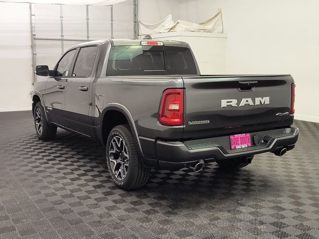Laramie Level 1 Equipment Group: Remote Tailgate Release; Secondary Active Grille Shutters; Rain Sensitive Windshield Wipers; Wireless Charging Pad. Quick Order Package 21H Laramie. Sport Appearance Package: 275/55R20 OWL All Season Tires; Accent Color Premium Power Mirrors; Exterior Mirrors with Supplemental Signals; Sport Performance Hood; Exterior Mirrors Courtesy Lamps; RAM Grille Badge - Chrome; Auto Power-Folding Mirrors; Exterior Mirrors with Heating Element; Auto Dim Exterior Driver Mirror; Exterior Mirrors with Memory; Black Interior Accents; Body Color Front Bumper; Convex Wide-Angle Exterior Mirror Insert; Body Color Rear Bumper with Step Pads; Bridgestone Brand Tires; Grille Surround 3 Body Color Tex 2 Black; Black Painted Exterior Mirrors Caps. Dual-Pane Panoramic Sunroof. Anti-Spin Differential Rear Axle. Trailer Brake Control. Granite Crystal Met CC. **Equipment listed is based on original vehicle build and subject to change. Please confirm the accuracy of the included equipment by calling the dealer prior to purchase.**