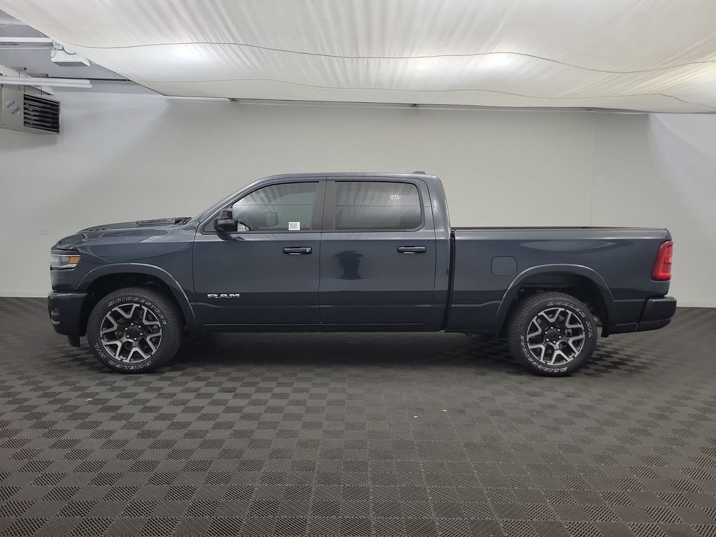 Quick Order Package 21H Laramie. Laramie Level 2 Equipment Group: Google Android Auto; SiriusXM Radio Service; USB Host Flip; Disassociated Touchscreen Display; HD Radio; Rain Sensitive Windshield Wipers; 14.4 Touchscreen Display; Integrated Center Stack Radio; Front Passenger Interactive Display; Integrated Voice Command with Bluetooth; Connectivity - US/Canada; Uconnect 5 Nav with 14.4 Display; GPS Navigation; 4G LTE Wi-Fi Hot Spot; GPS Antenna Input; Harman/kardon 19 Speaker Premium Sound; SiriusXM with 360L; Global Telematics Box Module; Connected Travel and Traffic Services; Cluster 12 TFT Color Display; Power Tailgate; Apple CarPlay. Sport Appearance Package: 275/55R20 OWL All Season Tires; Accent Color Premium Power Mirrors; Exterior Mirrors with Supplemental Signals; Sport Performance Hood; Exterior Mirrors Courtesy Lamps; RAM Grille Badge - Chrome; Auto Power-Folding Mirrors; Exterior Mirrors with Heating Element; Auto Dim Exterior Driver Mirror; Exterior Mirrors with Memory; Black Interior Accents; Body Color Front Bumper; Convex Wide-Angle Exterior Mirror Insert; Body Color Rear Bumper with Step Pads; Bridgestone Brand Tires; Grille Surround 3 Body Color Tex 2 Black; Black Painted Exterior Mirrors Caps. Dual-Pane Panoramic Sunroof. Anti-Spin Differential Rear Axle. Trailer Brake Control. Forged Blue Metallic. 3.92 Rear Axle Ratio. **Equipment listed is based on original vehicle build and subject to change. Please confirm the accuracy of the included equipment by calling the dealer prior to purchase.**