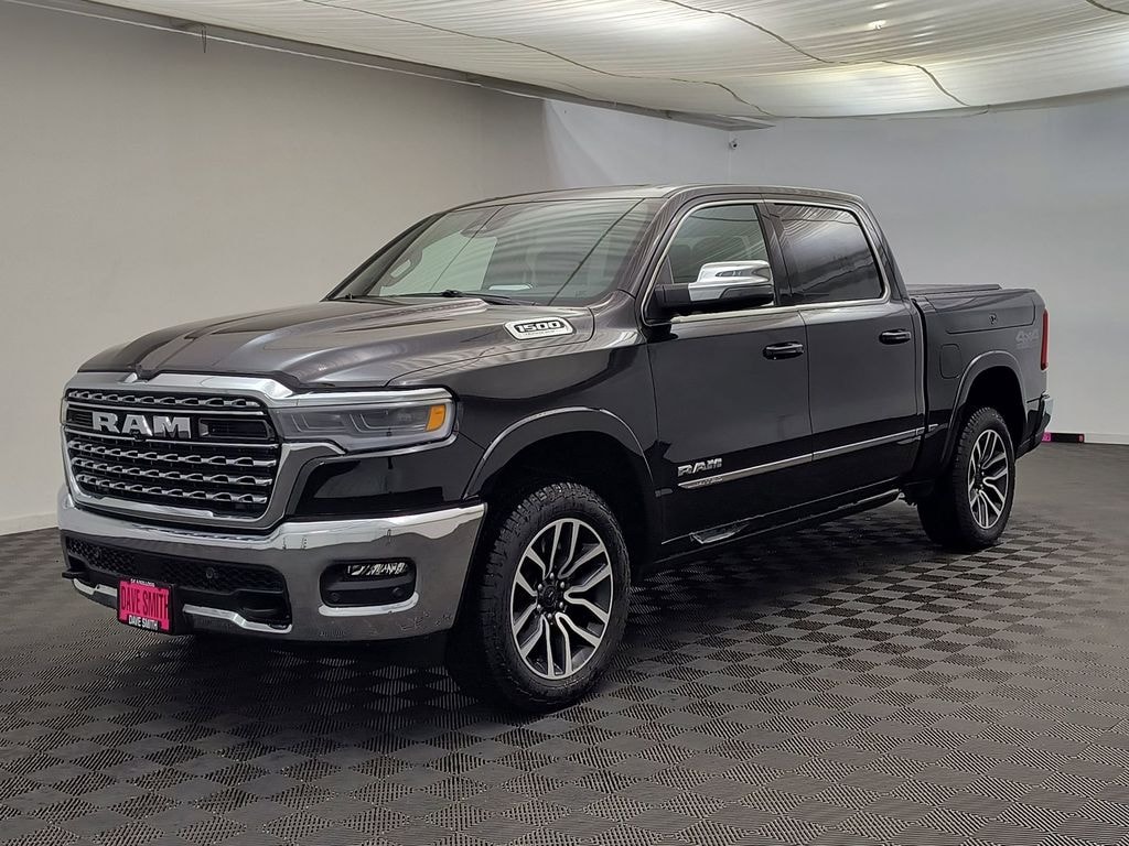 Quick Order Package 22M Limited. Limited Level A Equipment Group: Google Android Auto; SiriusXM Radio Service; USB Host Flip; Surround View Camera System; Integrated Center Stack Radio; LED CHMSL Lamp; Tri-Fold Tonneau Cover; Integrated Voice Command with Bluetooth; Connectivity - US/Canada; Traffic Sign Recognition; GPS Navigation; 4G LTE Wi-Fi Hot Spot; RamBox Cargo Management System; GPS Antenna Input; Hands-Free Active Driving Assist System; SiriusXM with 360L; Global Telematics Box Module; Head Up Display; Connected Travel and Traffic Services; Evasive Steer Assist; Drowsy Driver Detection; Exterior 115V AC Outlet; Intersection Collision Assist System; Apple CarPlay; Off-Road Information Pages; Disassociated Touchscreen Display; HD Radio; Smartphone as a Key Capable; 14.4 Touchscreen Display; Uconnect 5 Nav with 14.4 Display; 240 Amp Alternator; Digital Rearview Mirror; 12-Way/1-way Trailer Connector. Off Road Group: Front Extra Heavy Duty Shock Absorbers; Off Road Decals; Rear Extra Heavy Duty Shock Absorbers; Steering Gear Skid Plate; Falken Brand Tires; Full Size Spare Tire; E-Locker Rear Axle; Transfer Case Skid Plate; Fuel Tank Skid Plate; 275/55R20 BSW All-Terrain Tires; Raised Ride Height; Selec-Speed Control. Dual-Pane Panoramic Sunroof. Tri-Fold Tonneau Cover. E-Locker Rear Axle. Trailer Brake Control. Diamond Black Crystal PC. **Equipment listed is based on original vehicle build and subject to change. Please confirm the accuracy of the included equipment by calling the dealer prior to purchase.**
