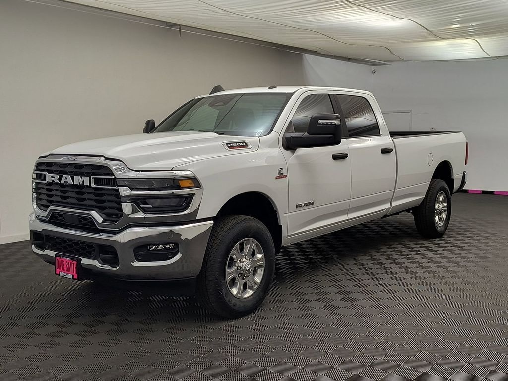 It features a hands-free Bluetooth phone system. The Ram 2500's Forward Collision Warning system alerts the driver to potential front-end collisions, enhancing safety. See what's behind you with the back up camera on this 3/4 ton pickup. This 2026 Ram 2500 has auto-adjust speed for safe following. It offers Apple CarPlay for seamless connectivity. Start this Ram 2500 from inside with remote start. It offers Android Auto for seamless smartphone integration. This unit is pure luxury with a heated steering wheel. The state of the art park assist system will guide you easily into any spot. This Ram 2500 has adjustable pedals that are luxurious and safety conscious. The Ram 2500 has a 6 Cyl, 6.7L high output engine. This Ram 2500 shines with clean polished lines coated with an elegant white finish. When you encounter slick or muddy roads, you can engage the four wheel drive on this 3/4 ton pickup and drive with confidence.