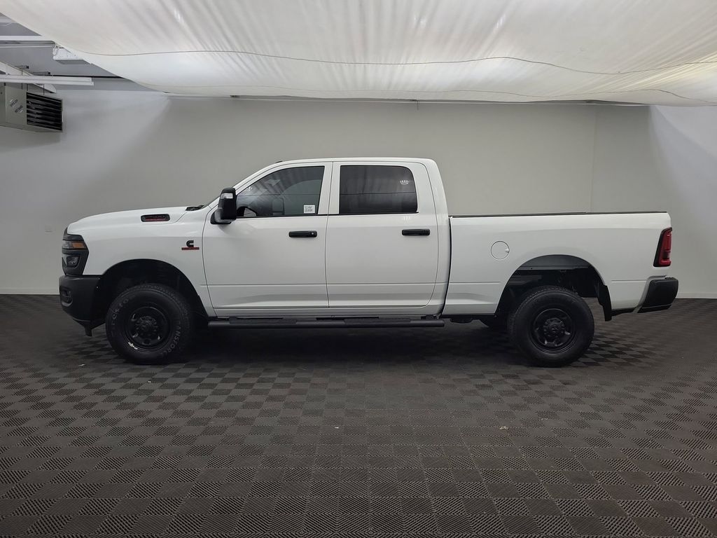 Cold Weather Group: Engine Block Heater; MOPAR Winter Front Grille Cover. Tradesman Level 1 Equipment Group: Google Android Auto; SiriusXM Radio Service; For Details. Visit DriveUconnect.com; For More Info. Call 800-643-2112; Integrated Voice Command with Bluetooth; Emergency Vehicle Alert System (EVAS); Manual Folding Exterior Mirrors; 12 Touchscreen Display; Auto Power-Folding Mirrors; 4 Way Front Headrests; Front Armrest with Cupholders; Anti-Spin Differential Rear Axle; Remote USB Port - Charge Only; Manual Adjust 4-Way Front Passenger Seat; Mirror Running Lights; Exterior 115V AC Outlet; Alexa Built-In; Apple CarPlay; Power-Adjustable Convex Aux Mirrors; Forward and Reverse Utility Lights; Cloth 40/20/40 Bench Seat; Disassociated Touchscreen Display; Storage Tray; 115-Volt Auxiliary Front Power Outlet; Rear View Auto Dim Mirror; 40/20/40 Split Bench Seat; Rear Power Sliding Window; Connectivity - US/Canada; Rear Folding Seat; Tinted Acoustic Windshield Glass; GPS Navigation; 4G LTE Wi-Fi Hot Spot; GPS Antenna Input; Exterior Mirrors with Heating Element; MOPAR Black Tubular Side Steps; SiriusXM with 360L; Global Telematics Box Module; Connected Travel and Traffic Services; Black Exterior Mirrors; 2 Way Rear Headrest Seat; Carpet Floor Covering; Off-Road Info Pages; Selectable Tire Fill Alert; Trailer Tow Pages; 400W Inverter; HD Radio; Power Heated Folding Telescope Mirrors; Uconnect 5 Navigation with 12.0 Display Radio; Exterior Mirrors with Supplemental Signals; Exterior Mirrors Courtesy Lamps; Air Conditioning ATC with Dual Zone Control; Manual Adjust 4-Way Driver Seat; Manuarl Telescoping Mirrors; Power Adjust Mirrors; Power Telescoping Mirrors; Front and Rear Floor Mats; ParkSense Front/rear Park Assist System. Convenience Group. Quick Order Package 24A Tradesman. Commercial Features Package: 400W Inverter; 115-Volt Auxiliary Front Power Outlet; Exterior 115V AC Outlet; ParkSense Front/rear Park Assist System. MOPAR Black Tubular Side Steps. Anti-Spin Differential Rear Axle. Cloth 40/20/40 Bench Seat. Instrument Panel Mounted Auxiliary Switches. **Equipment listed is based on original vehicle build and subject to change. Please confirm the accuracy of the included equipment by calling the dealer prior to purchase.**